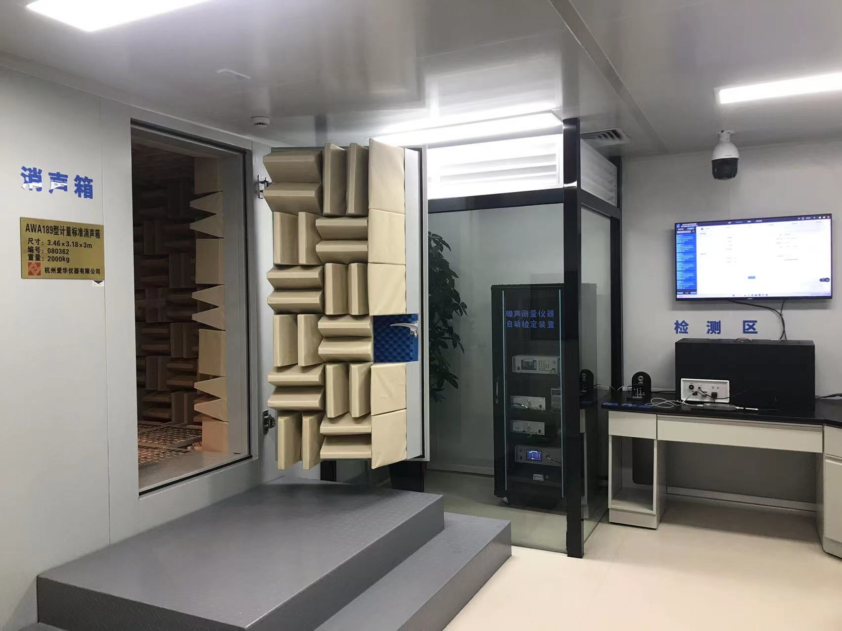 通过省计量科学研究院智控中心的大屏幕实现远距离控制和操作,能将测试指令、测试结果实时传输,实现数字化管理,并自动生成证书报告。可开展声级计、噪声统计分析仪、倍频程和分数倍频程滤波器、个人声暴露计、噪声剂量计等噪声测量仪器的检定项目。